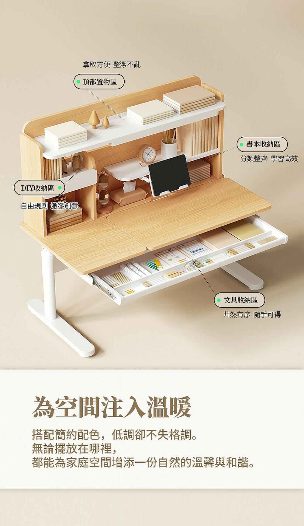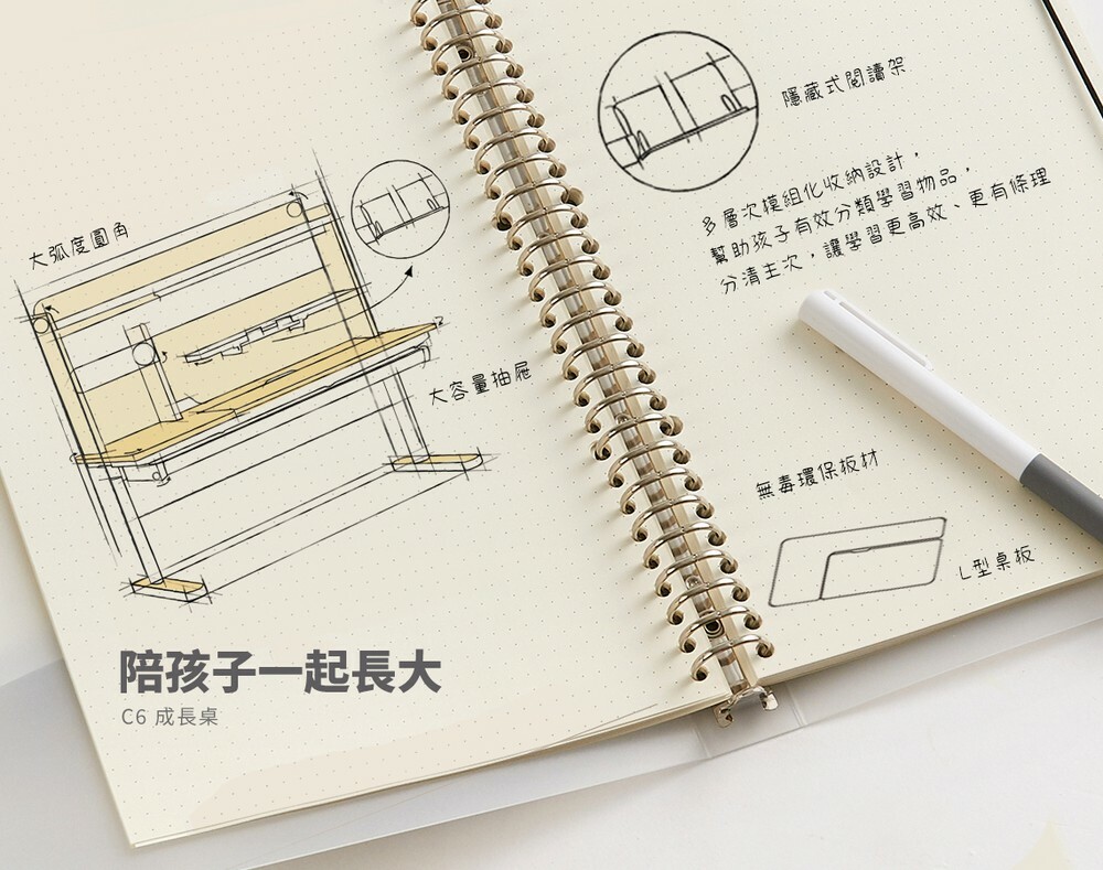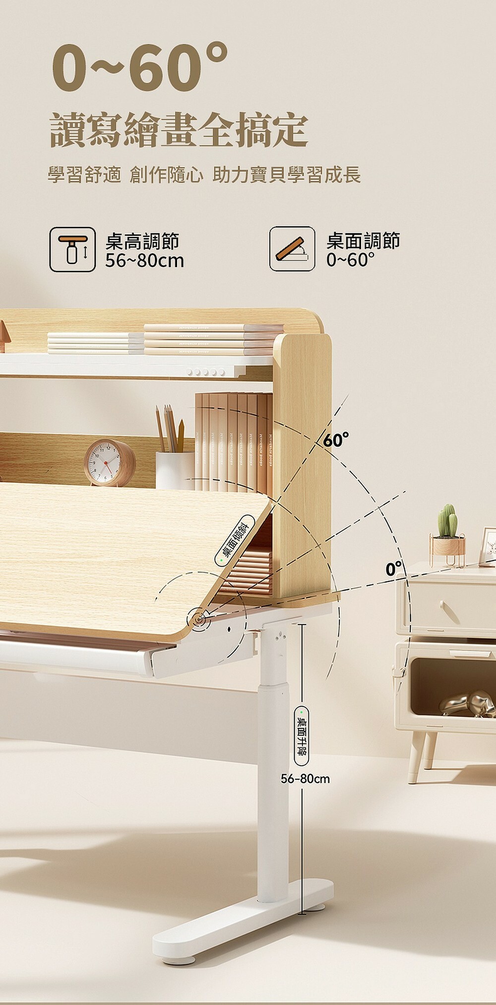 ● 桌面0~60度角度調節,寫作繪畫一桌搞定