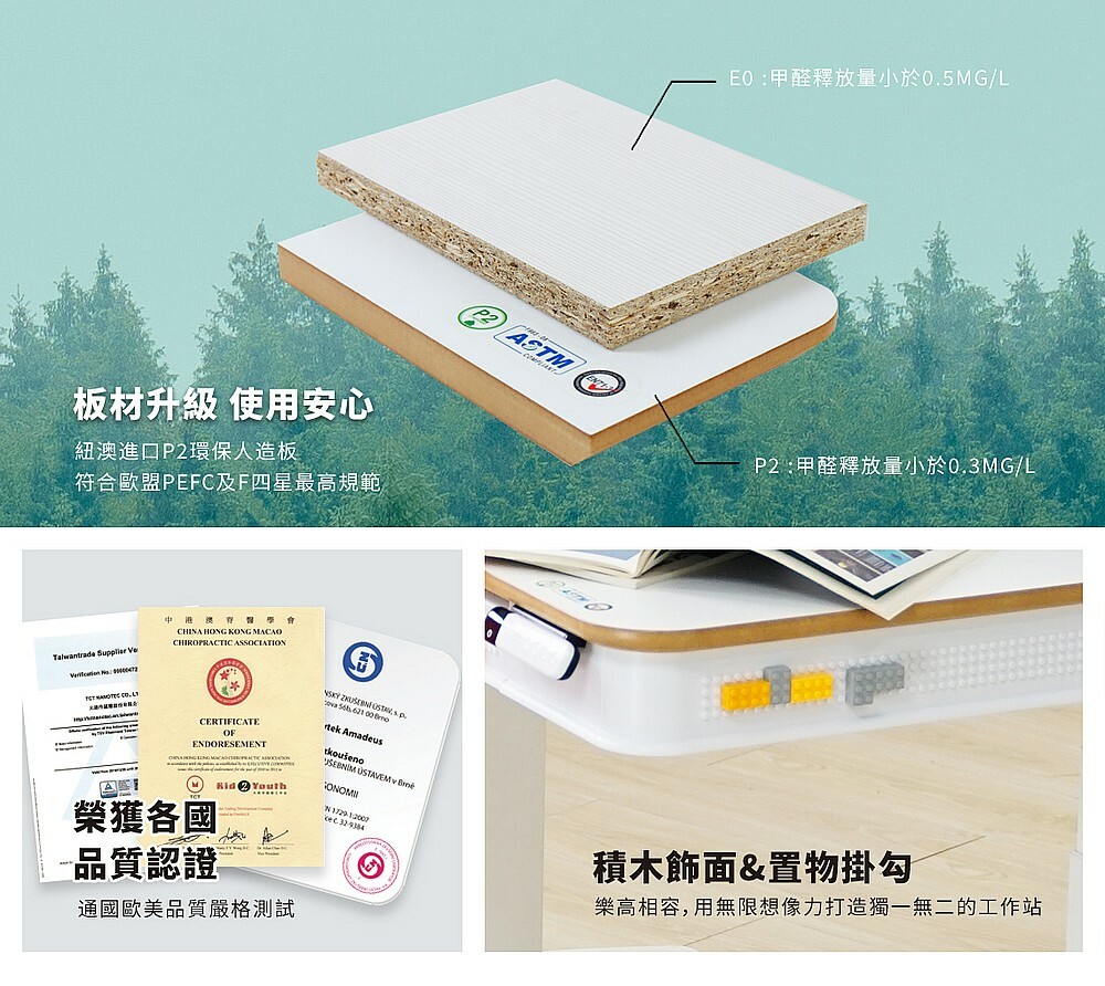 ● 紐澳進口 MDF P2 板材,防眩、防刮桌面