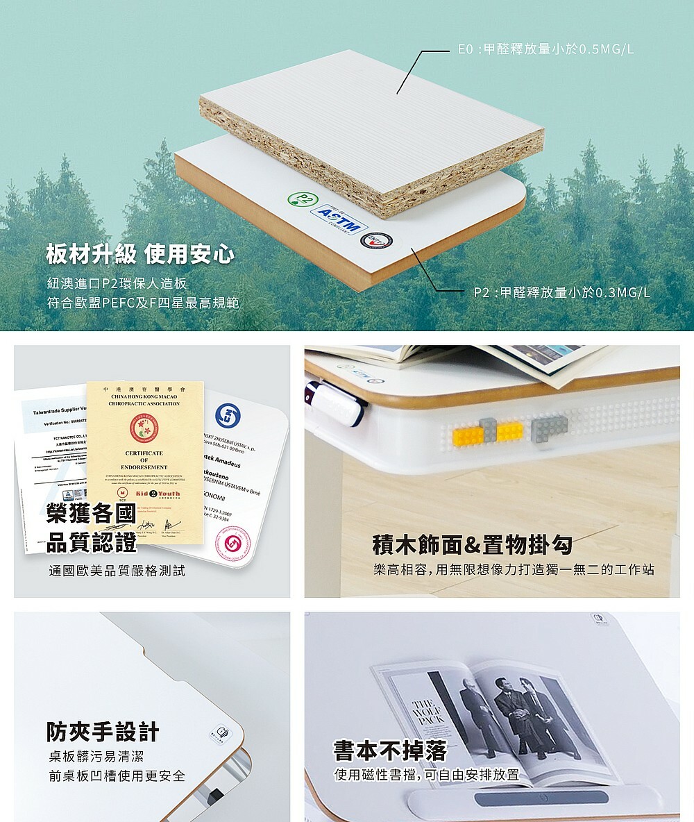 ● 紐澳進口 MDF P2 板材,防眩、防刮桌面