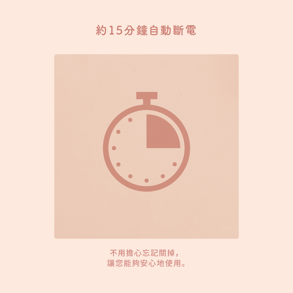 ● 15分鐘安全自動斷電,使用更安心